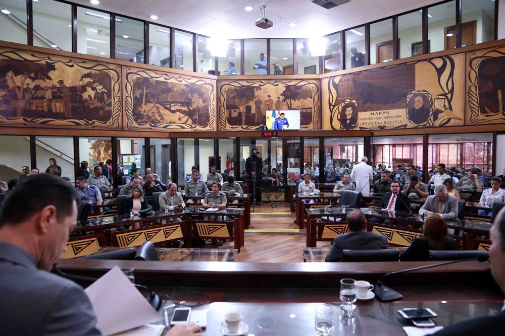 O plenário fez ainda um minuto de silêncio em homenagem aos policiais militares que faleceram no exercício de suas atribuições como policiais.